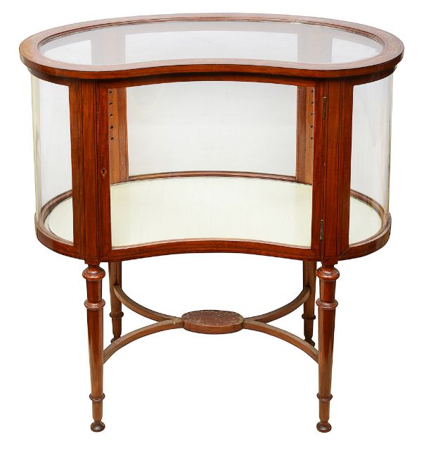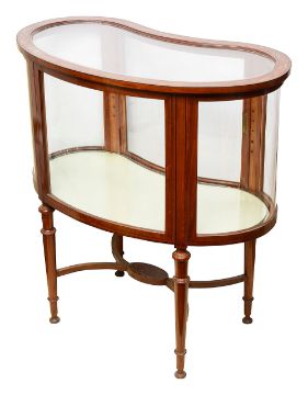 An Edwardian Sheraton Revival painted satinwood kidney shaped vitrine