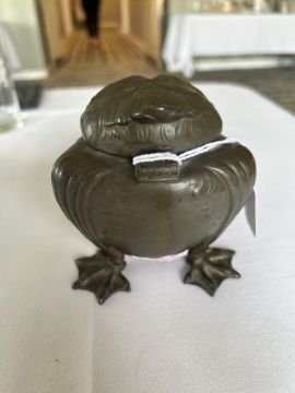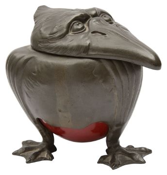 A continental Jugendstil pewter novelty inkwell in the form a grotesque bird c.1900