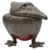 cast as a grotesque bird, with hinged lid, the body of red glazed earthenware