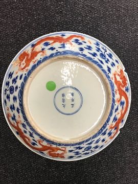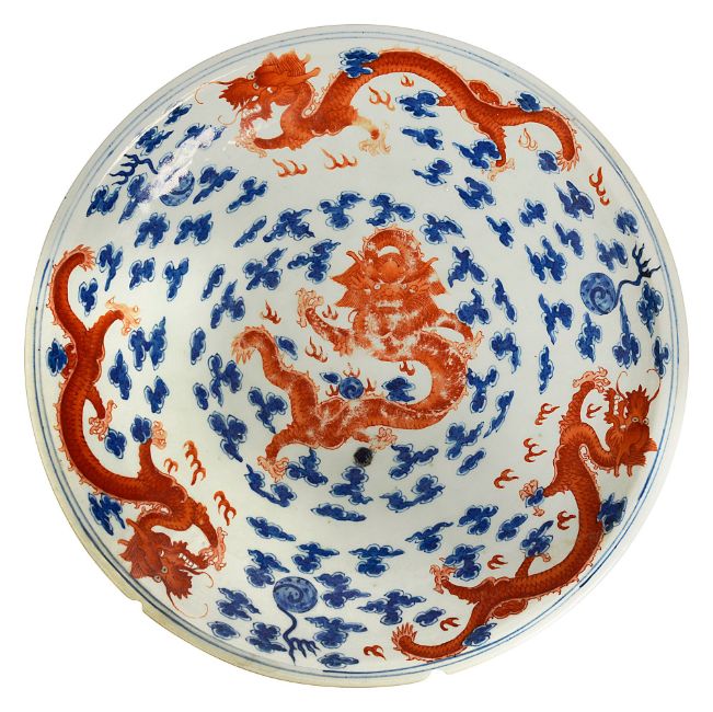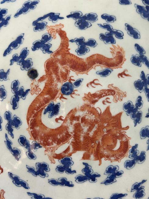 painted with a central iron red four clawed dragon, and a flaming pearl