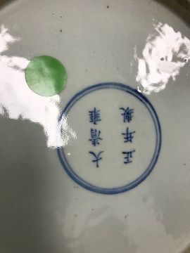 Condition: Two fresh chips to rim. Old restoration to dish back under one of these chips and in another area which is also hairlined . Rubbing to centre.