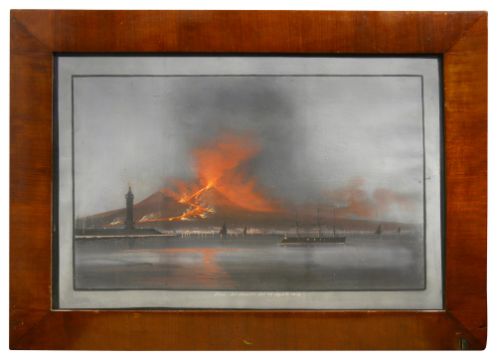 'Eruz del Vesuvio del 12 Aprile 1814', gouache, titled below image, framed