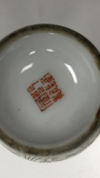 decorated with two figures in a landscape, bearing red Qianlong Nian Zhi seal mark to base