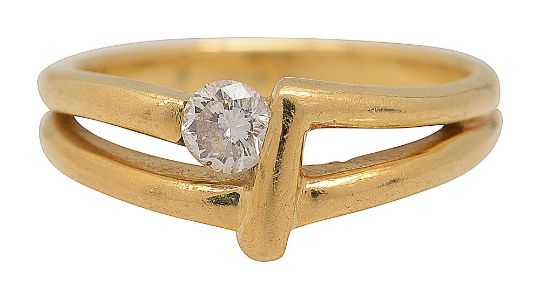 the bifurcated shank set to one side with a brilliant-cut diamond, the shank interior stamped '750 18K'
