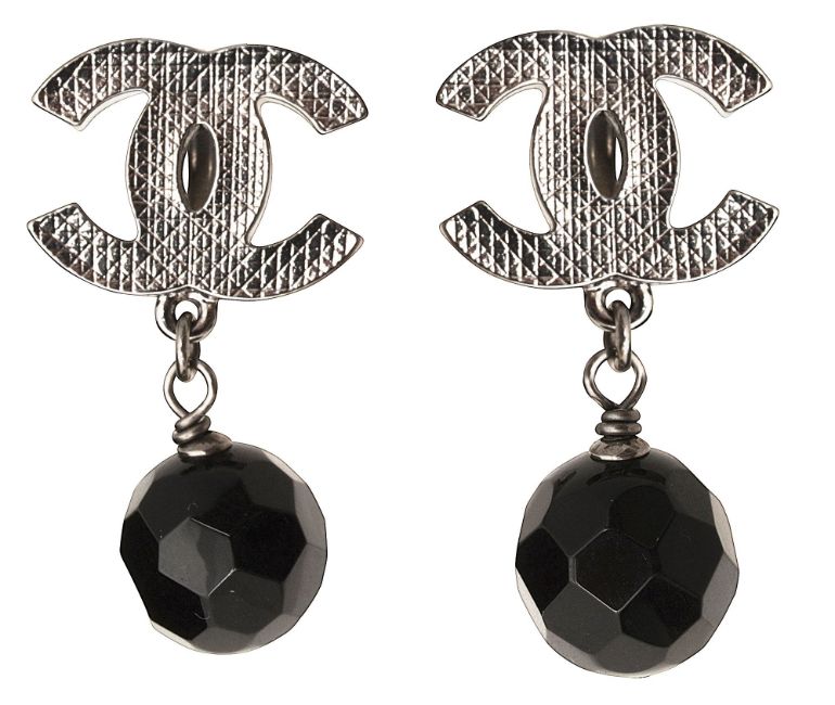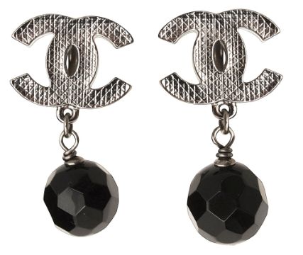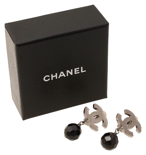 textured addorsed 'CC' suspending faceted black beads, stamped to reverse 'Chanel 10 V Made in France' (2)