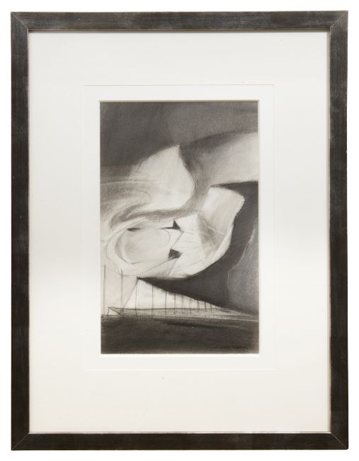 'A view of the South Coast', charcoal on paper, signed lower right, mounted and framed