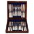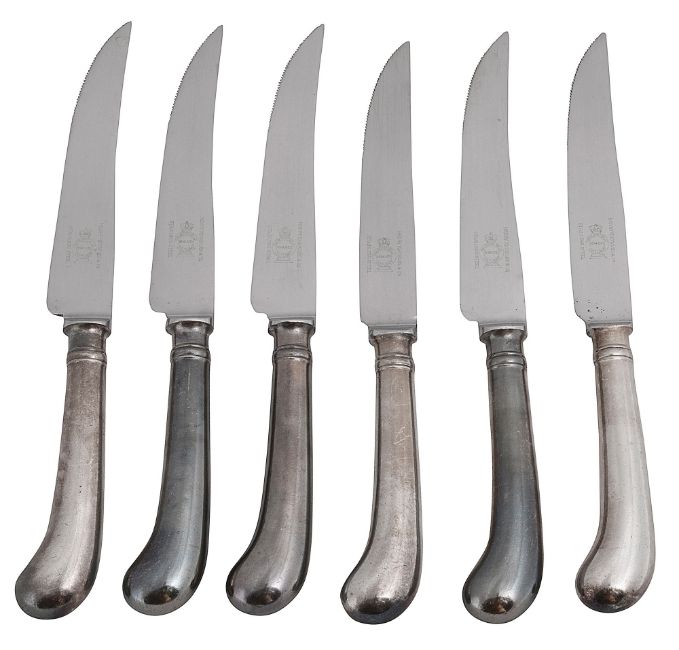 Condition: Some tarnish, no chips or issues to handles, no key for case. Case hinge lacking pin.