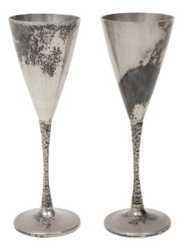 Stuart Devlin (1931-2018) A pair of modern silver and parcel gilt liqueur goblets