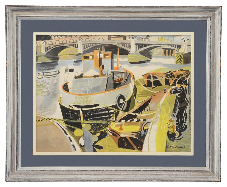'Bank side, Southwark' gouache, signed lower right, mounted and framed