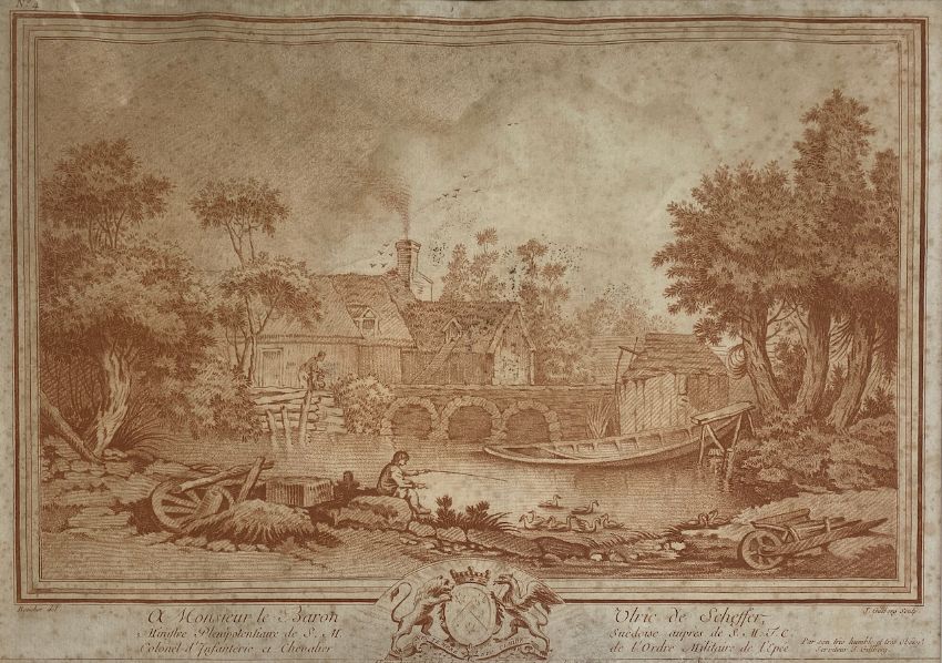Condition: 'Paysage au bord d'une riviere' - patch of foxing to the centre right margin, and general foxing to the surface of the paper. Foxing to the general surface of the three folio prints. Viewing recommended in person.