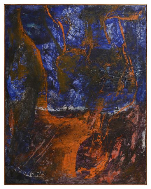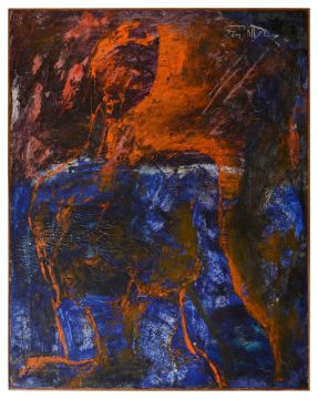 ÔAbstract in blue and orangeÕ, oil on canvas, signed to reverse