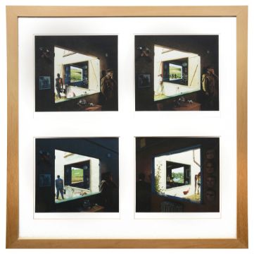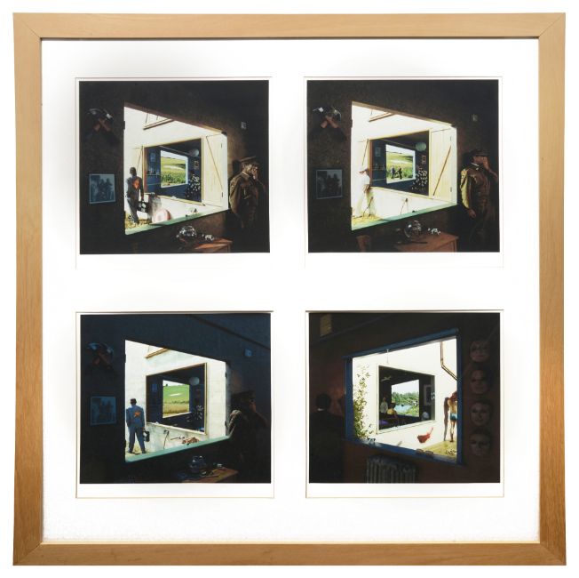 each print featuring different motifs taken from previous Pink Floyd LP covers, each edited slightly differently suggesting that these were first drafts for the album artwork, high quality giclee prints, signed in pencil lower right, edition in pencil lower left, mounted and framed