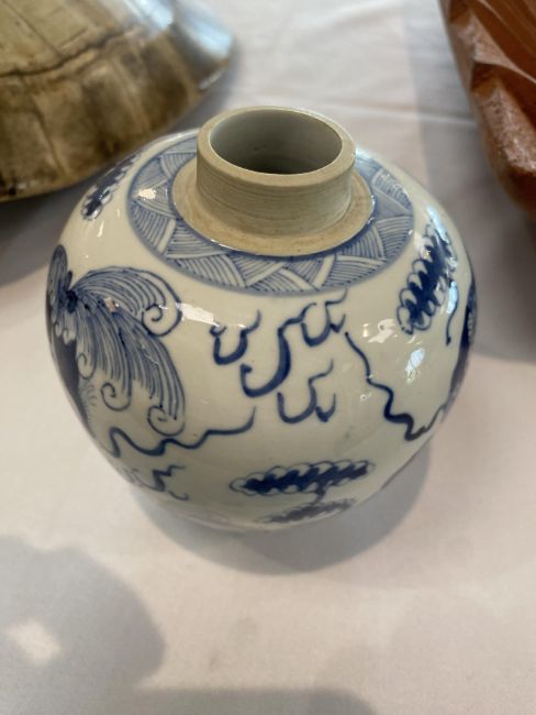 A small 19th century Chinese blue and white porcelain ginger jar