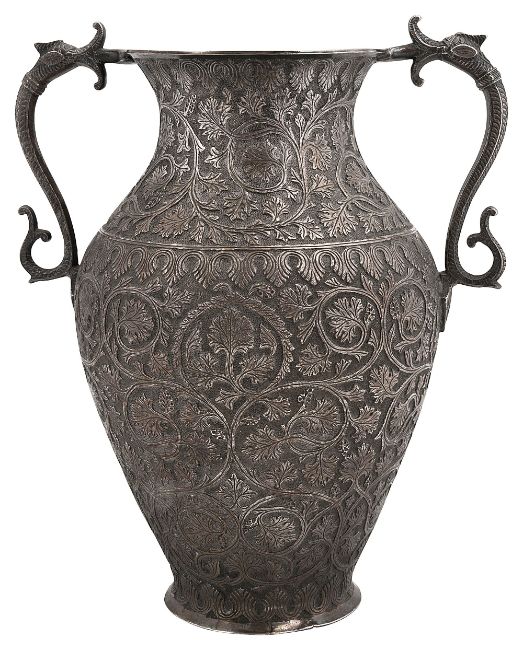A late 19th century Indian Kashmiri chased silver twin handled vase