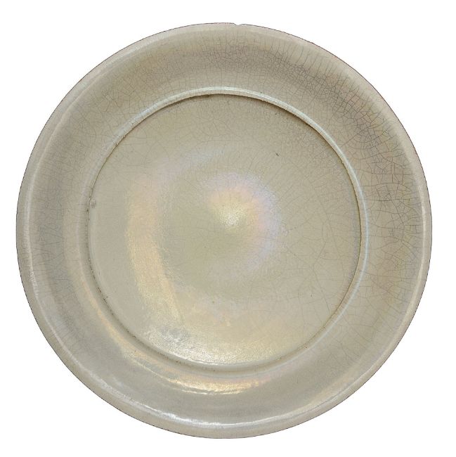 crackled iridescent pale celadon green glaze, impressed mark