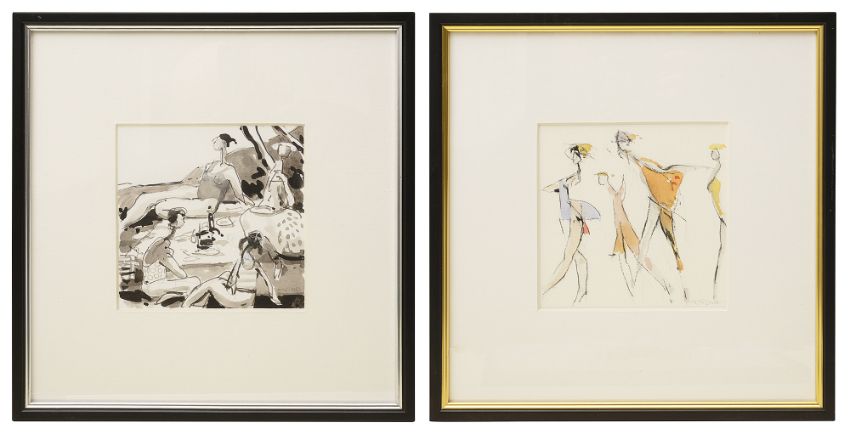 'A figural study' grey wash and ink, signed lower right corner, mounted and framed, together with another by the same hand (2)
