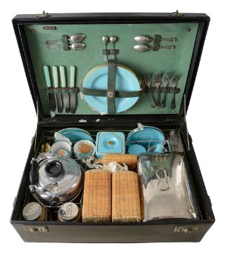A 1930s Brexton Motoring picnic hamper