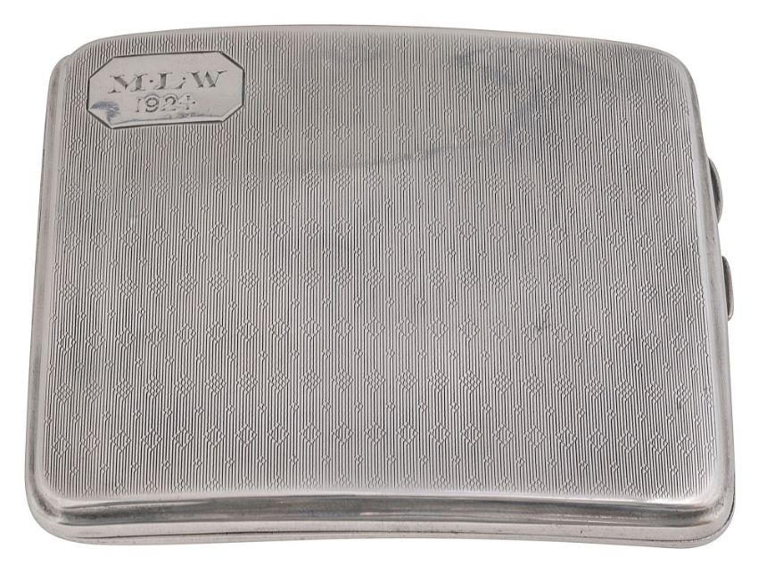 Birmingham, 1923, Robert Pringle & Sons, engine turned and of curved form, upper cartouche initialled 'M L W 1924', side stamped Pd 701473