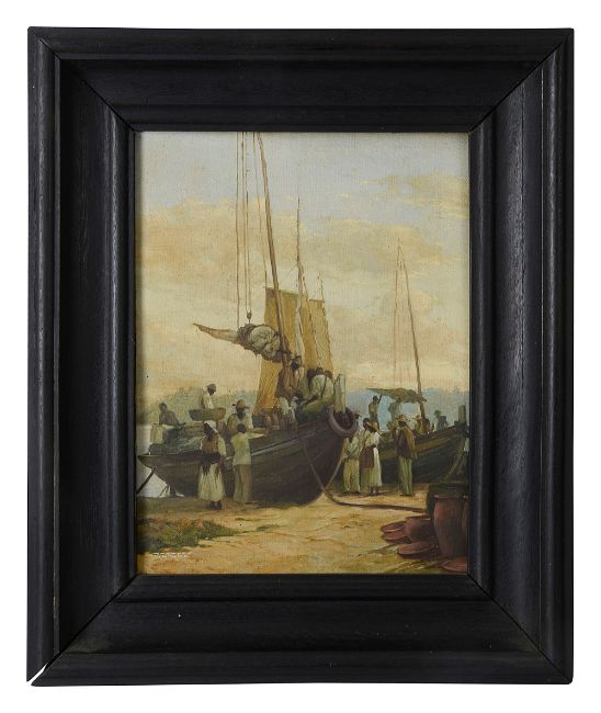 'A Shipping scene, most likely Brazil', oil on canvas, signed lower left, framed