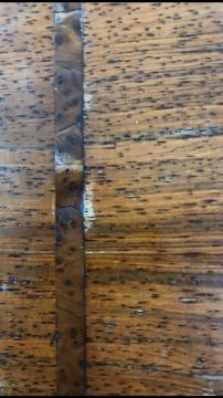 Condition: Good overall, joints firm. There are some old marks and scratches commensurate with age and use. There are two patches of worn polish to the front. Very minor losses to the stringing and a small area of banding has been reset. The drawer formerly had dividers.