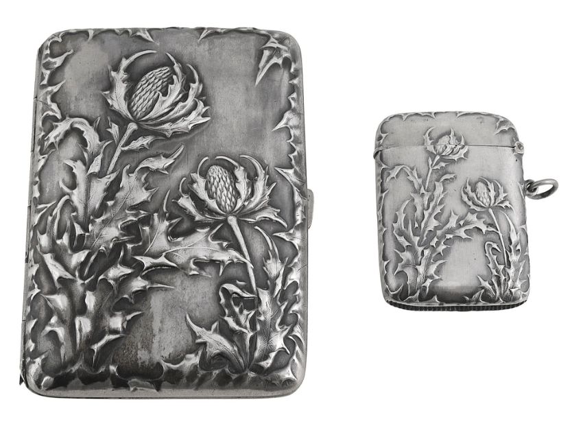 A German Art Nouveau .800 silver cigarette case and matching vesta case