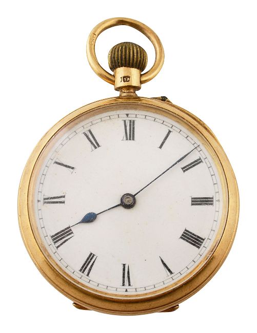 An 18ct gold open faced keyless pocket watch