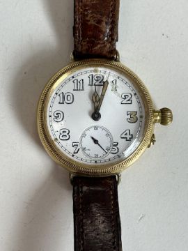 An IWC for Stauffer & Co WWI Officers 18ct gold Borgel cased Trench wristwatch