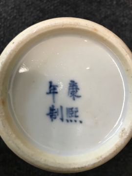 of shouldered baluster form, decorated with twin dragons within foliate, prunus and chrysthanemum backgrounds, undersides with four character Kangxi marks (2)