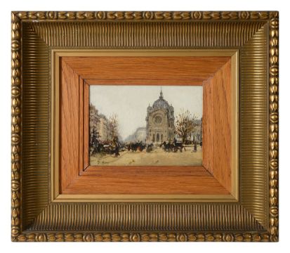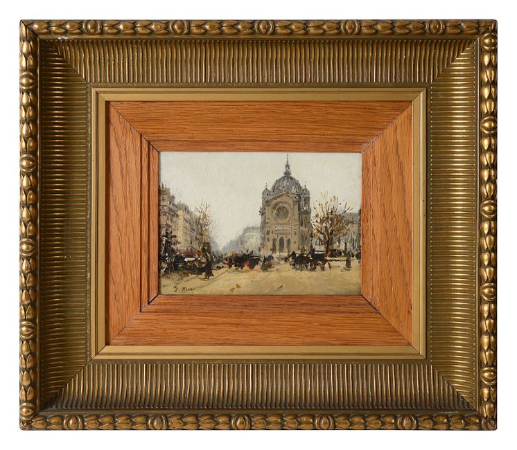 'A view of a church', oil on panel, inscribed to lower left, framed