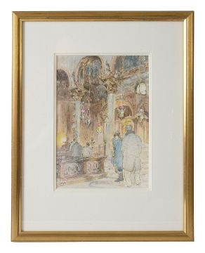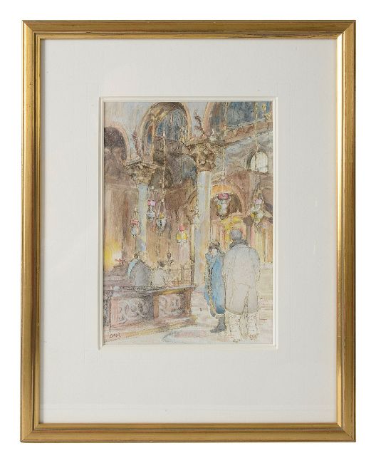 'The lamps in San Marco, Venice' watercolour and gouache, intialled lower left, mounted and framed
