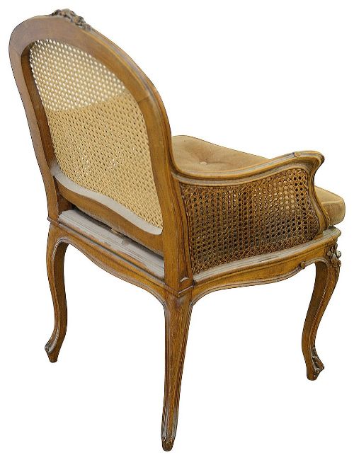 Condition: Good overall condition, the joints are firm and the caning is OK. There is an associated buttoned seat cushion.