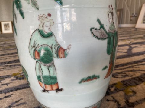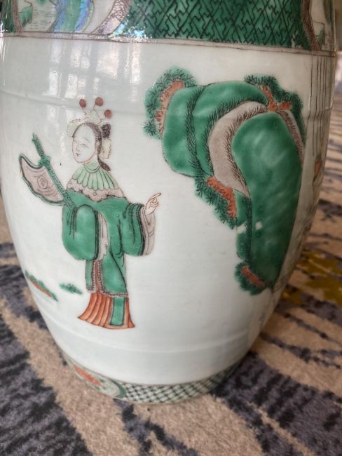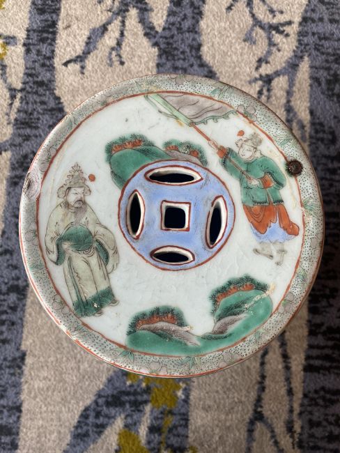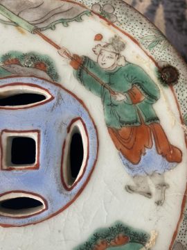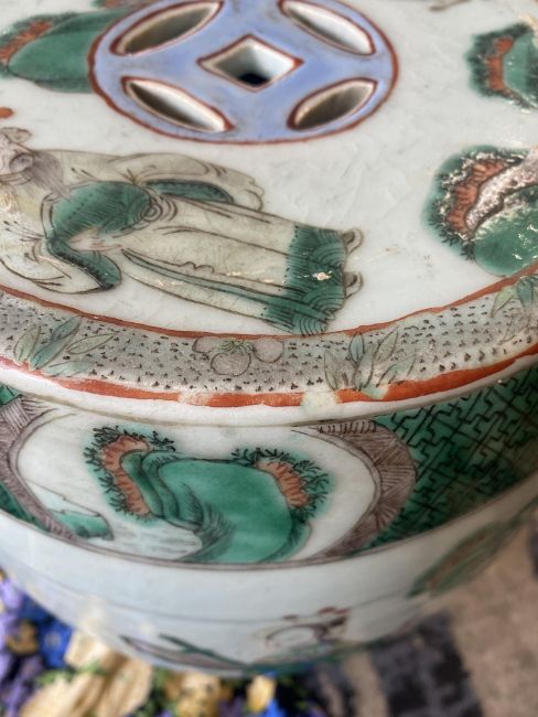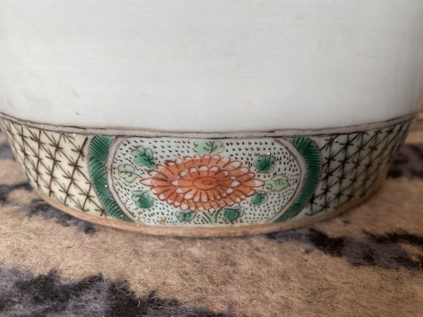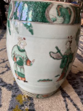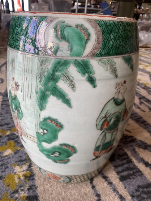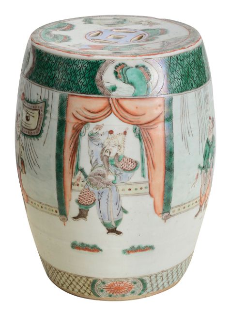 A late 19th century Chinese famille verte child's barrel form ceramic garden seat