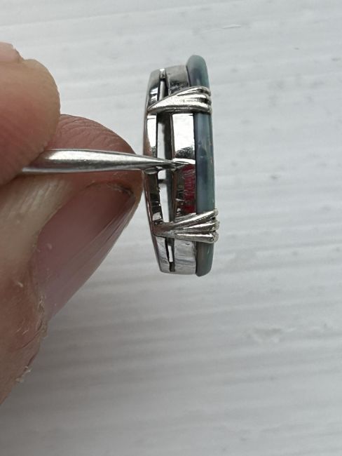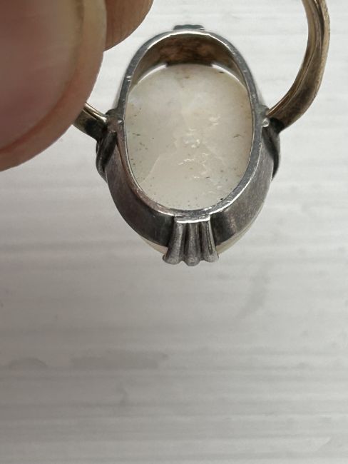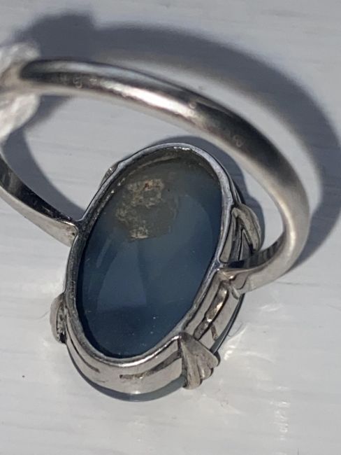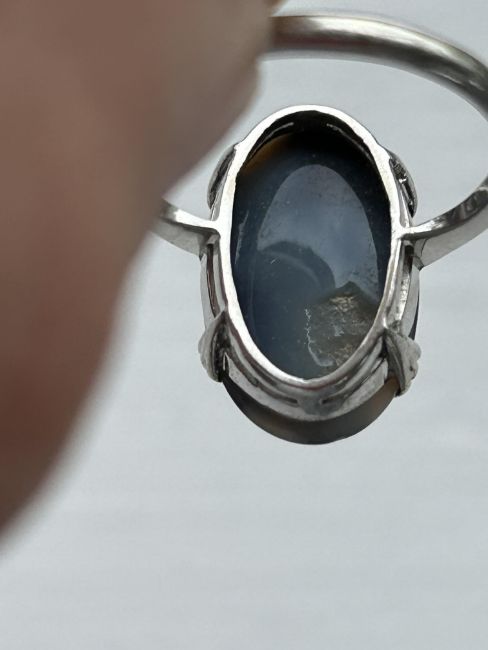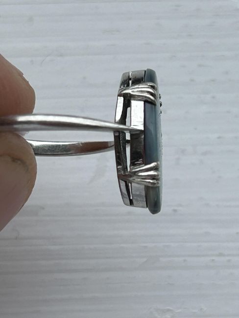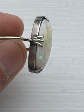 the oval black opal cabochon, claw set to the plain tapering shank, stamped Ô9ctÕ together with an opal ring, claw set to the plain tapering shank with indistinct marks (2)
