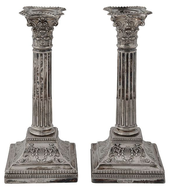 Condition: both candlesticks has two small holes on on capital scrolls, otherwise fair condition