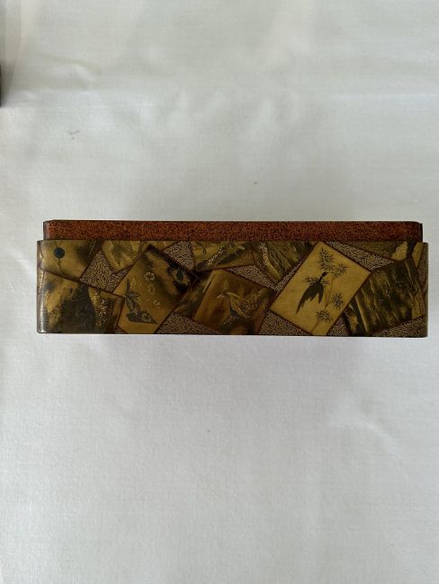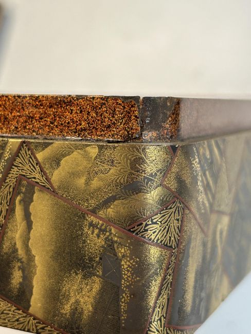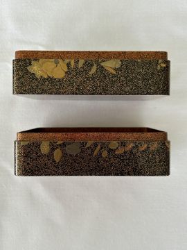 A 19th century Japanese gold lacquer box with interior tray and two fitted boxes