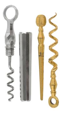 An early 19th century cut steel travelling sheath corkscrew and and gilt metal peg and worm corkscrew c.1800