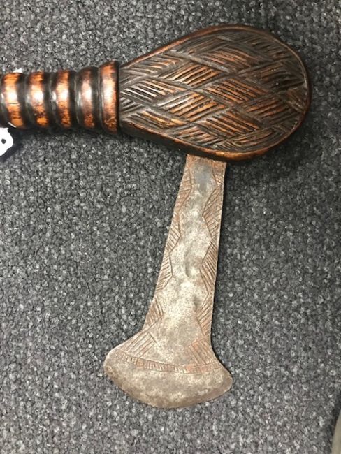 A Luba ceremonial hardwood axe or kibiki/kasolura