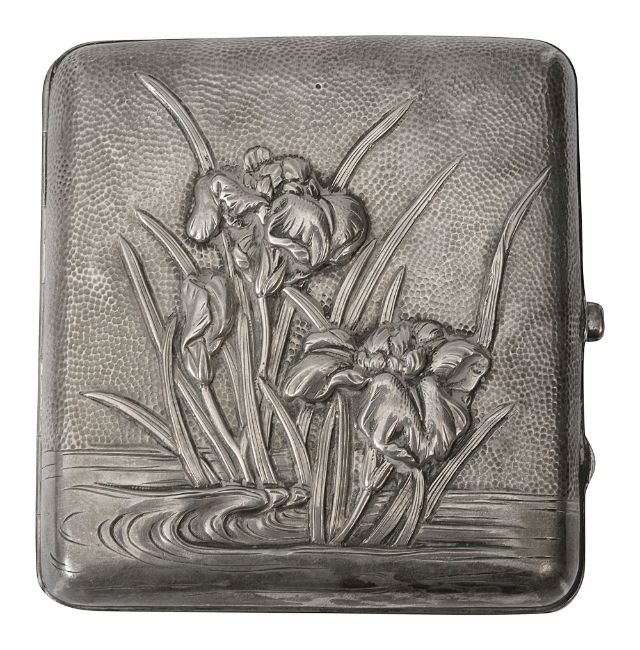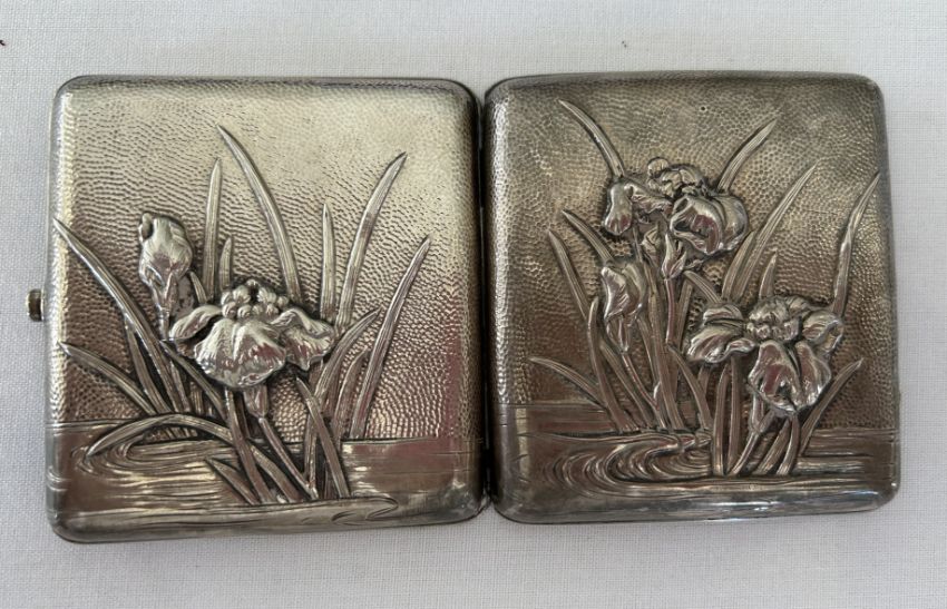 A Japanese Meiji period silver repousse cigarette case