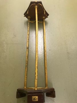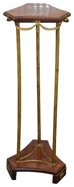 Condition: Top worn from use. Gilt to metal columns worn. A little loose overall, one support is not quite straight.
