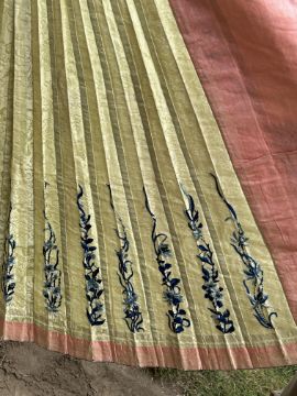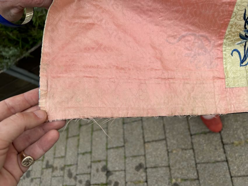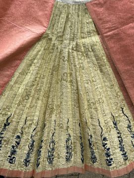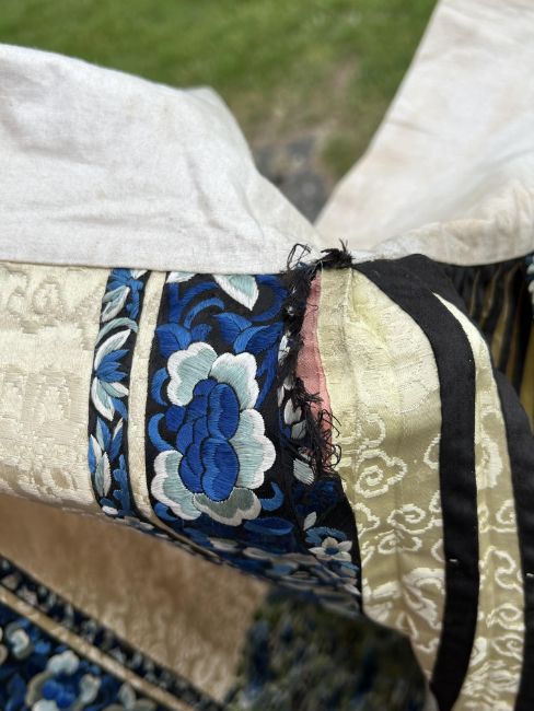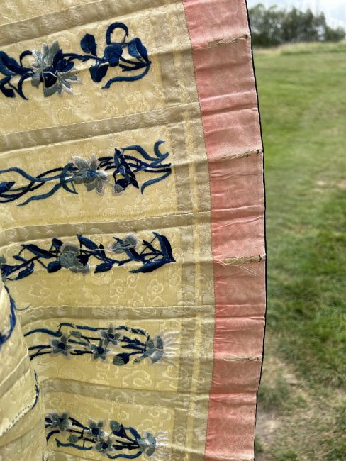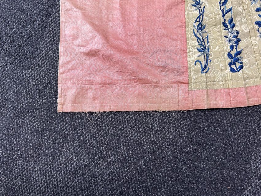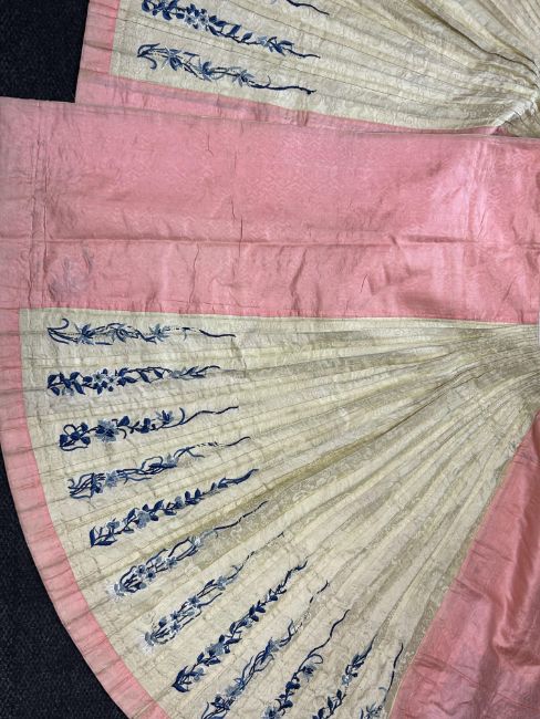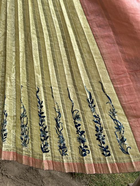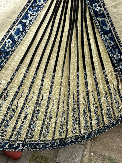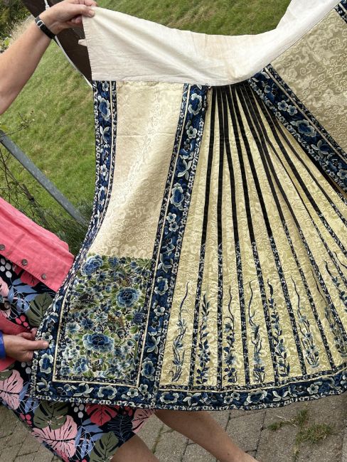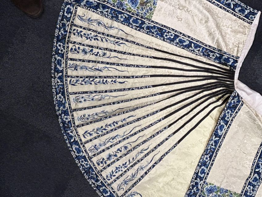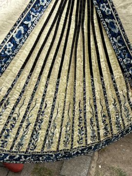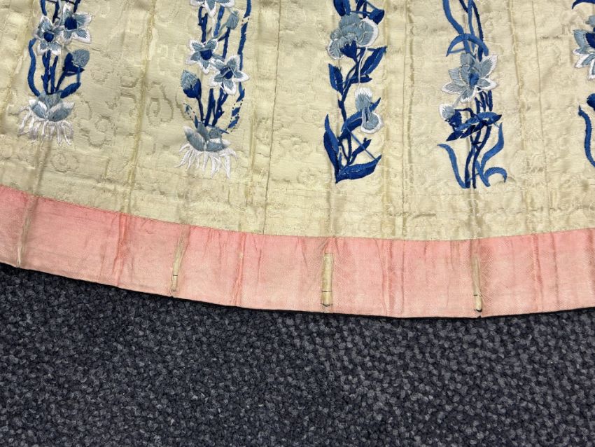 A late 19th century Chinese embroidered silk damask pleat skirt
