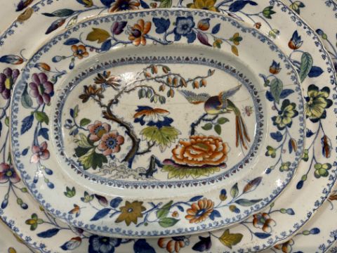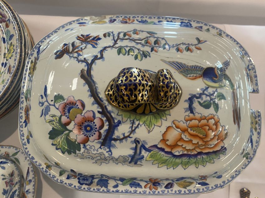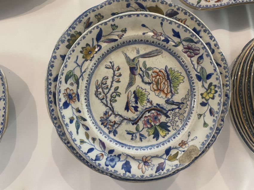 An early 19th century Davenport Stone China No 6 'Flying Bird' pattern part dinner service c.1820
