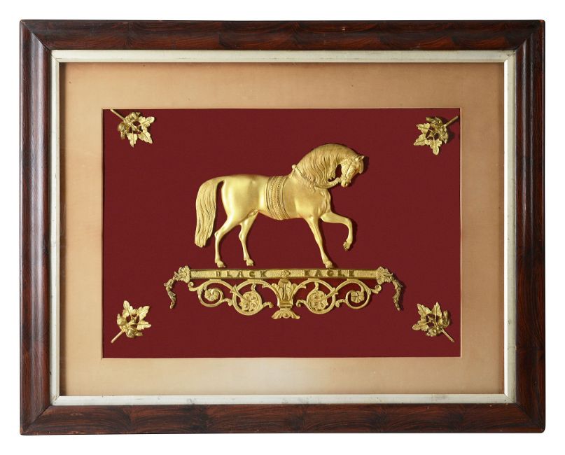 A late 19th century gilt bronze plaque of the the performing circus horse Black Eagle