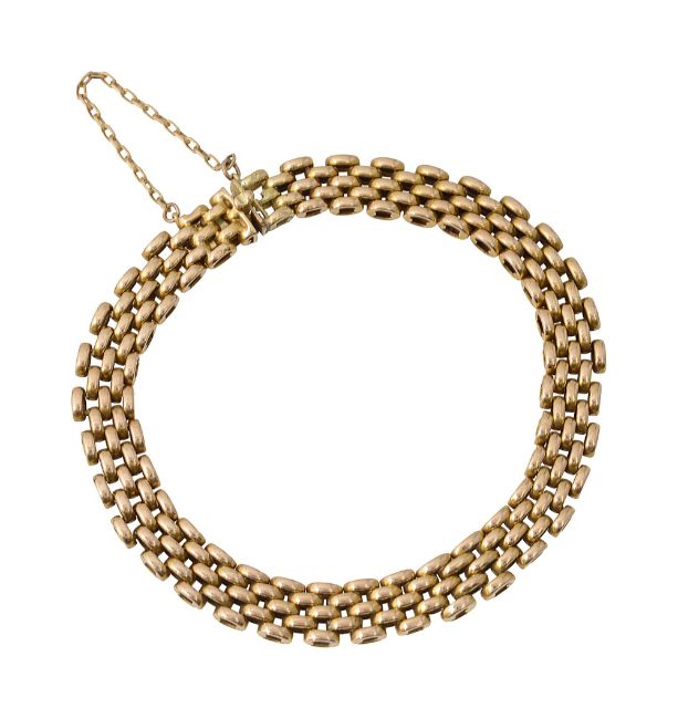 stamped '15k' to push clasp, with safety chain, in associated fitted box