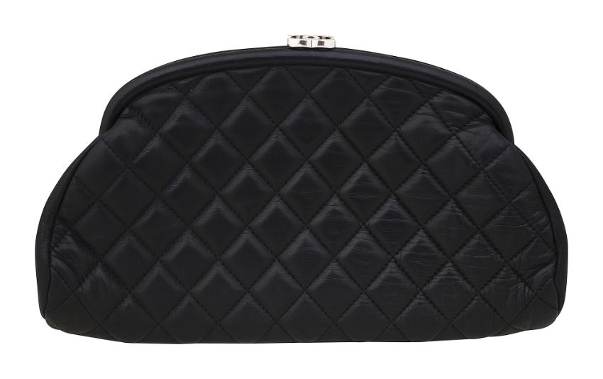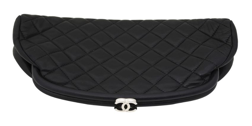 with silver hardware clasp with interlocking addorsed CCs, with serial number label and card both numbered 11401825, with dust bag