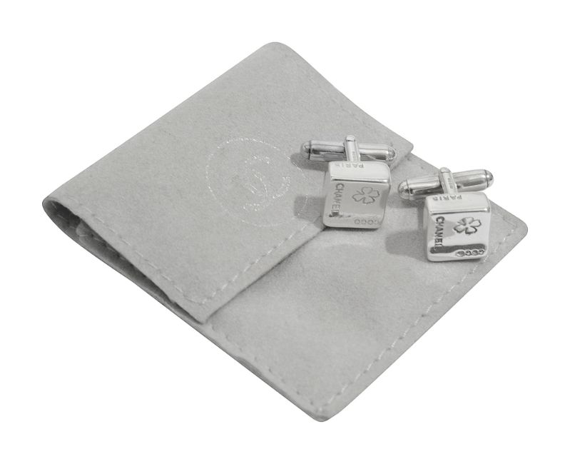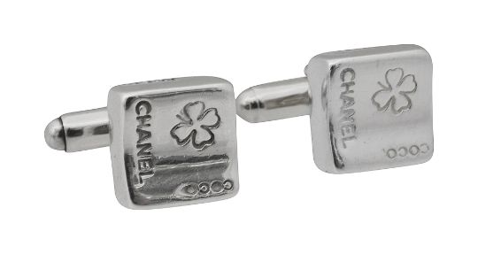 A pair of square silver cufflinks by Chanel