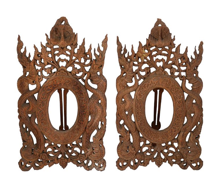 A pair of large Burmese carved teak easel back photograph frames c.1900