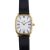 the oval plated steel case, with Roman numerals and calendar aperture to 6, on black leather strap with original case, guarantee etc.
