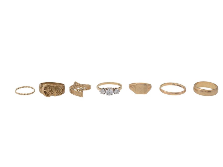 A group of 9ct gold rings