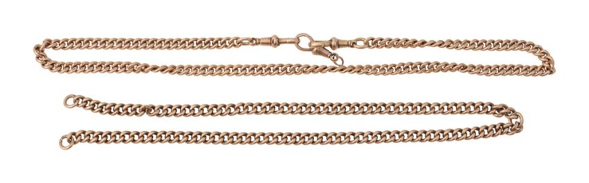 stamped to each link '9.375', together with another curb-link chain, stamped '9c' to each link (2)