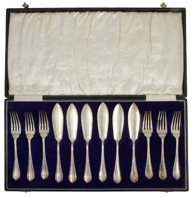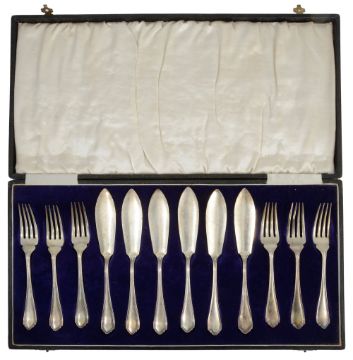 A George V set of six silver fish forks and knives
